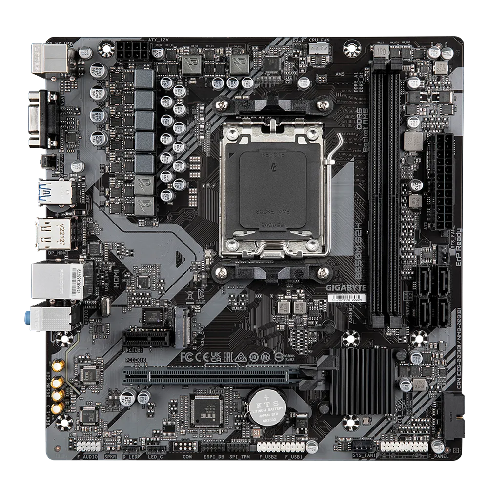 Piegāde visā Latvijā un iespēja saņemt pasūtījumu izsniegšanas punktā. Ērti norēķinu veidi. Iespēja apmaksat tieši interneta veikalā, ar karti vai skaidrā naudā preces saņemšanas punkta. Detalizēts preču apraksts un salīdzināšanas iespēja. Populārākie zīmoli no pasaules ražotājiem. 87,50 € Preces ID: 1219 Pamatplate GIGABYTE B650 B650M S2H Brown (B650M S2H 1.0) PamataRažotājs ........................................................................................................................................................................................................ Ražotāja kods ........................................................................................................................................................................................................ B650M S2H 1.0 Ligzda ........................................................................................................................................................................................................ AM5 Mikroshēmu kopa (Chipset) ........................................................................................................................................................................................................ AMD B650 AtmiņaAtmiņas veids ........................................................................................................................................................................................................ DDR5 Atmiņas slotu skaits ........................................................................................................................................................................................................ 2 Diska kontrolieriSATA kontrolieris ........................................................................................................................................................................................................ 4 x SATA-III (6 Gb/s) RAID atbalsts ........................................................................................................................................................................................................ 0, 1, 10 Paplašināšanas slotiPaplašināšanas sloti ........................................................................................................................................................................................................ PCI-E 4.0 x16, PCIe 3.0 x1, PCI-E M.2 M.2. slotu veids ........................................................................................................................................................................................................ 1 x M.2 connector (M2A_CPU), integrated in the CPU, supporting Socket 3, M key, type 2580 SSDs: