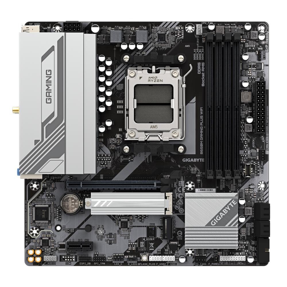 Piegāde visā Latvijā un iespēja saņemt pasūtījumu izsniegšanas punktā. Ērti norēķinu veidi. Iespēja apmaksat tieši interneta veikalā, ar karti vai skaidrā naudā preces saņemšanas punkta. Detalizēts preču apraksts un salīdzināšanas iespēja. Populārākie zīmoli no pasaules ražotājiem. 132,40 € Preces ID: 1806 Pamatplate GIGABYTE B650 B650M GAMING PLUS WF PamataRažotājs ........................................................................................................................................................................................................ Ražotāja kods ........................................................................................................................................................................................................ B650M GAMING PLUS WF Ligzda ........................................................................................................................................................................................................ AM5 Mikroshēmu kopa (Chipset) ........................................................................................................................................................................................................ AMD B650 AtmiņaAtmiņas veids ........................................................................................................................................................................................................ DDR5 Atmiņas slotu skaits ........................................................................................................................................................................................................ 4 Diska kontrolieriSATA kontrolieris ........................................................................................................................................................................................................ 4 x SATA-III (6 Gb/s) RAID atbalsts ........................................................................................................................................................................................................ 0, 1, 10 Paplašināšanas slotiPaplašināšanas sloti ........................................................................................................................................................................................................ PCI-E 4.0 x16, PCIe 3.0 x1, 2 x PCI-E M.2 M.2. slotu veids ........................................................................................................................................................................................................ 1 x M.2 connector (M2A_CPU), integrated in the CPU, supporting Socket 3, M key, type 2580 SSDs: