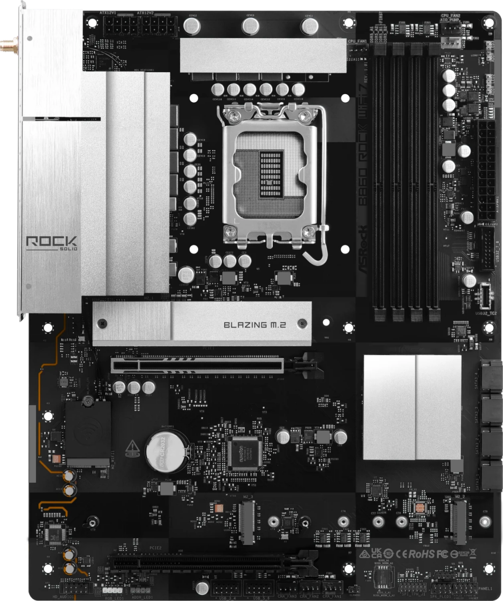 Piegāde visā Latvijā un iespēja saņemt pasūtījumu izsniegšanas punktā. Ērti norēķinu veidi. Iespēja apmaksat tieši interneta veikalā, ar karti vai skaidrā naudā preces saņemšanas punkta. Detalizēts preču apraksts un salīdzināšanas iespēja. Populārākie zīmoli no pasaules ražotājiem. 146,30 € Preces ID: 45545 Pamatplate ASRock B860 Rock Black (90-MXBUA0-A0UAYZ) PamataRažotājs ........................................................................................................................................................................................................ Ražotāja kods ........................................................................................................................................................................................................ 90-MXBUA0-A0UAYZ Ligzda ........................................................................................................................................................................................................ LGA1851 Mikroshēmu kopa (Chipset) ........................................................................................................................................................................................................ Intel B860 AtmiņaAtmiņas veids ........................................................................................................................................................................................................ DDR5 Atmiņas slotu skaits ........................................................................................................................................................................................................ 4 Diska kontrolieriSATA kontrolieris ........................................................................................................................................................................................................ 4 x SATA-III (6 Gb/s) RAID atbalsts ........................................................................................................................................................................................................ 0, 1, 5, 10 Paplašināšanas slotiPaplašināšanas sloti ........................................................................................................................................................................................................ PCI-E 5.0 x16, PCI-E 4.0 x16, 4 x PCI-E M.2 M.2. slotu veids ........................................................................................................................................................................................................ - 1 x Blazing M.2 Socket (M2_1, Key M), supports type 2280 PCIe Gen5x4 (128 Gb/s) mode*