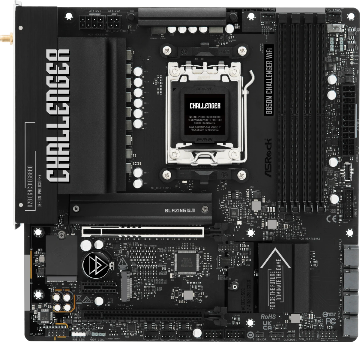 Piegāde visā Latvijā un iespēja saņemt pasūtījumu izsniegšanas punktā. Ērti norēķinu veidi. Iespēja apmaksat tieši interneta veikalā, ar karti vai skaidrā naudā preces saņemšanas punkta. Detalizēts preču apraksts un salīdzināšanas iespēja. Populārākie zīmoli no pasaules ražotājiem. 142,60 € Preces ID: 45750 Pamatplate ASRock B850M Challenger WiFi Black (90-MXBU40-A0UAYZ) PamataRažotājs ........................................................................................................................................................................................................ Ražotāja kods ........................................................................................................................................................................................................ 90-MXBU40-A0UAYZ Ligzda ........................................................................................................................................................................................................ AM5 Mikroshēmu kopa (Chipset) ........................................................................................................................................................................................................ AMD B850 AtmiņaAtmiņas veids ........................................................................................................................................................................................................ DDR5 Atmiņas slotu skaits ........................................................................................................................................................................................................ 4 Diska kontrolieriSATA kontrolieris ........................................................................................................................................................................................................ 4 x SATA-III (6 Gb/s) RAID atbalsts ........................................................................................................................................................................................................ 0, 1, 10 Paplašināšanas slotiPaplašināšanas sloti ........................................................................................................................................................................................................ PCI-E 5.0 x16, PCI-E 4.0 x16, PCIe 4.0 x1, 3 x PCI-E M.2 M.2. slotu veids ........................................................................................................................................................................................................ 2× M.2 Key M (NVMe, Gen5x4 + Gen4x4) + 1× M.2 Key E (Wi‑Fi) Atbalstītie PCI-Express režīmi ........................................................................................................................................................................................................ PCIe 5.0 ×16 (CPU), PCIe 4.0 ×4, PCIe 4.0 ×1, M.2 PCIe Gen5 ×4, M.2 PCIe Gen4 ×4 Audio/VideoIntegrētais video ........................................................................................................................................................................................................ jā (ja tiek izmantots procesors ar video kodolu) Skaņa ........................................................................................................................................................................................................ 8 kanāli (7.1) Audio kontrolieris ........................................................................................................................................................................................................ Realtek ALC897 TīklsTīkla saskarne ........................................................................................................................................................................................................ 2.5 Gigabit Ethernet (100/1000/2500 Mbps), Wi-Fi, Bluetooth Tīkla kontrolieris ........................................................................................................................................................................................................ Realtek RTL8125BG SaskarnesLigzdas aizmugurējā panelī ........................................................................................................................................................................................................ 2 x USB 2.0, 3 x audio jacks, 6 x USB 3.2 Gen1, HDMI, RJ-45 Barošanas apakšsistēmas radiators (mosfeti) ........................................................................................................................................................................................................ jā PapilduLigzdas korpusa ventilatoru pieslēgšanai ........................................................................................................................................................................................................ 3-pin, 4-pin ATX 12 V barošanas ligzda ........................................................................................................................................................................................................ 4-pin, 8-pin Iekšējās USB pieslēgvietas platē ........................................................................................................................................................................................................ 2 x USB 2.0, USB 3.2 Gen1, USB 3.2 Gen1 Type-C ARGB 5V savienotāji uz plates ........................................................................................................................................................................................................ 3-pin RGB 12V