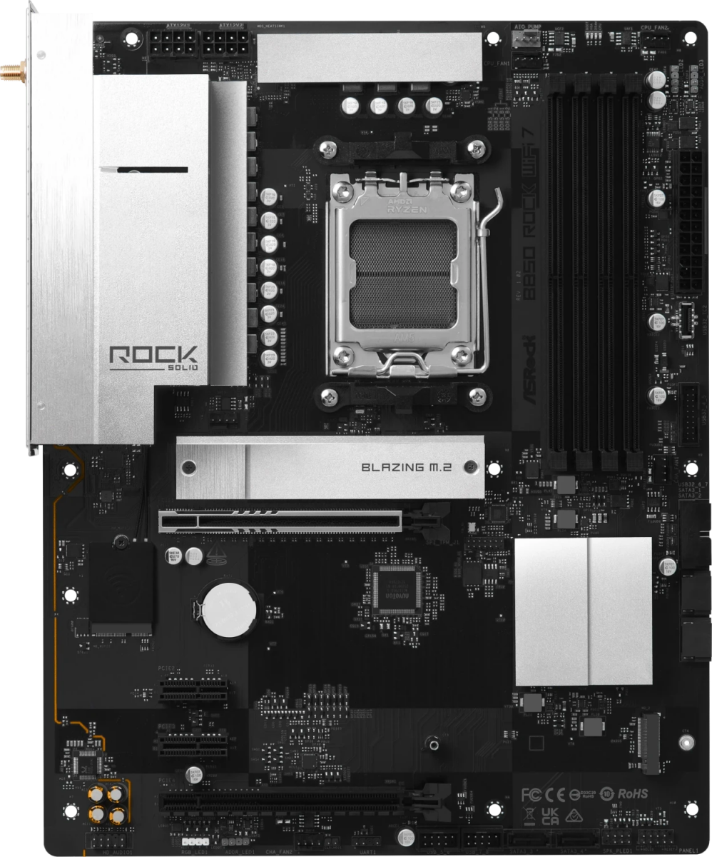 Piegāde visā Latvijā un iespēja saņemt pasūtījumu izsniegšanas punktā. Ērti norēķinu veidi. Iespēja apmaksat tieši interneta veikalā, ar karti vai skaidrā naudā preces saņemšanas punkta. Detalizēts preču apraksts un salīdzināšanas iespēja. Populārākie zīmoli no pasaules ražotājiem. 172,40 € Preces ID: 45753 Pamatplate ASRock B850 Rock WiFi7 Black (90-MXBU20-A0UAYZ) PamataRažotājs ........................................................................................................................................................................................................ Ražotāja kods ........................................................................................................................................................................................................ 90-MXBU20-A0UAYZ Ligzda ........................................................................................................................................................................................................ AM5 Mikroshēmu kopa (Chipset) ........................................................................................................................................................................................................ AMD B850 AtmiņaAtmiņas veids ........................................................................................................................................................................................................ DDR5 Atmiņas slotu skaits ........................................................................................................................................................................................................ 4 Diska kontrolieriSATA kontrolieris ........................................................................................................................................................................................................ 4 x SATA-III (6 Gb/s) RAID atbalsts ........................................................................................................................................................................................................ 0, 1, 10 Paplašināšanas slotiPaplašināšanas sloti ........................................................................................................................................................................................................ PCI-E 5.0 x16, PCI-E 4.0 x16, 2 x PCIe 4.0 x1 M.2. slotu veids ........................................................................................................................................................................................................ 1 × M.2 (Key M) — PCIe Gen5 ×4
